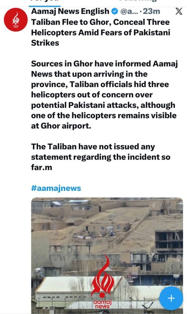 According to media reports, at least four sources in Ghor Province said that several Taliban officials arrived in the province on Saturday morning, March 14, in four helicopters to seek refuge. According to the sources, this movement was made due to fears of possible Pakistani airstrikes.