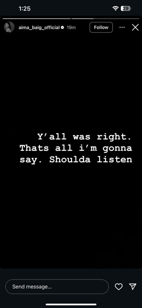 Moreover, a cryptic Instagram story from Aima suggests a possible separation between the two stars.