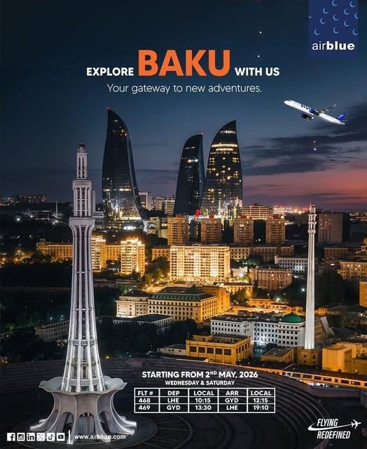Airblue, one of Pakistan’s top private airlines, has announced two new weekly direct flights between Lahore (LHE) and Baku (GYD) starting May 2, 2026.