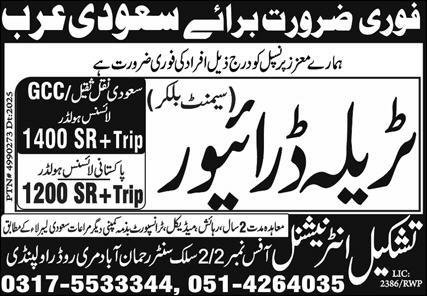 | HTV Driver & Traila Driver | Tashkeel International | Upload CV to Apply, WhatsApp Channel, Join Now 0317-5533344 051-4264035 |