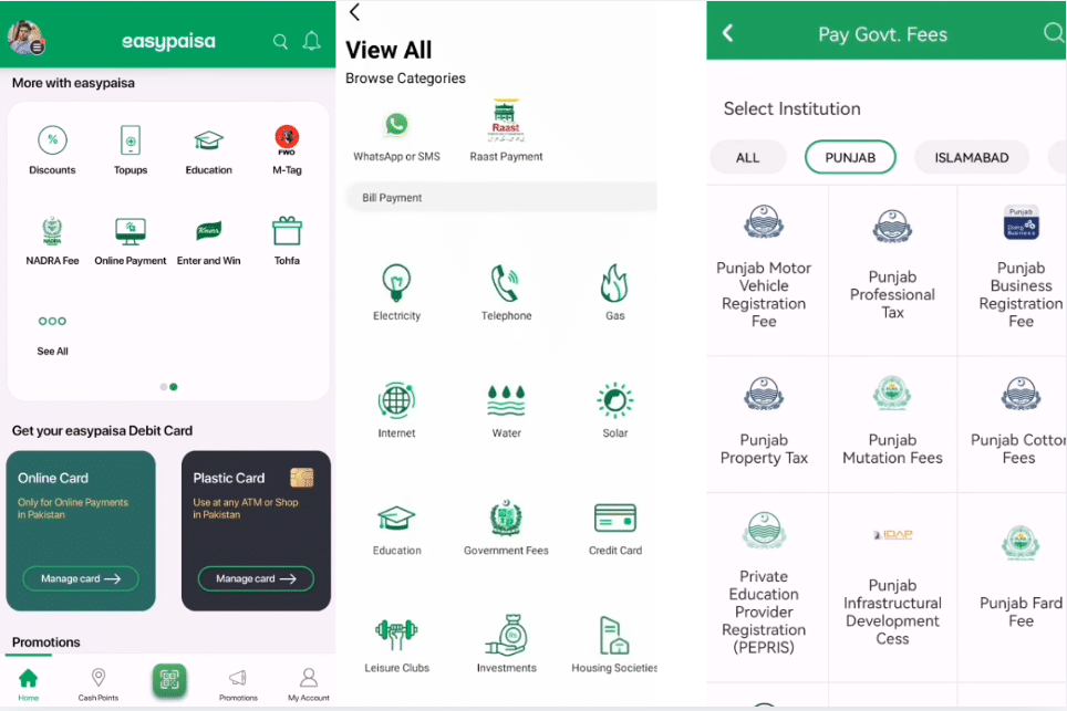 The applicants who want to apply for their driving license can opt for the following method for paying the smart card driving license fees by using the Easypaisa app: