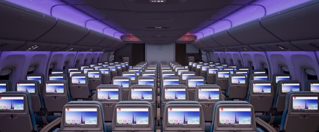 The Boeing 777-200LR will feature a three-cabin layout, including First Class, Business Class, Premium Economy and Economy.