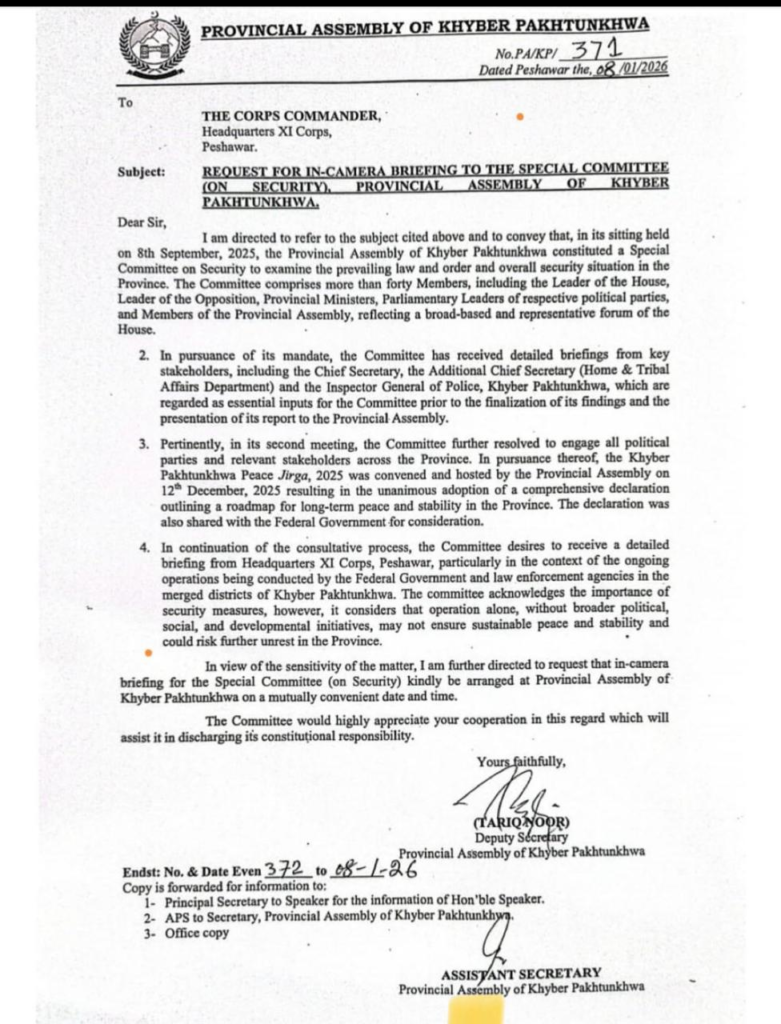 A letter of Khyber Pakhtunkhwa provincial assembly circulated on social media by PTI propagandists claiming that it was written to Pak Army 11 Corps for an in-camera security briefing shows their lack of understanding of the system.