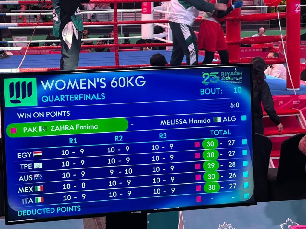 Boxer Fatima Zahra has confirmed Pakistan’s first medal at the 6th Islamic Solidarity Games in Riyadh.