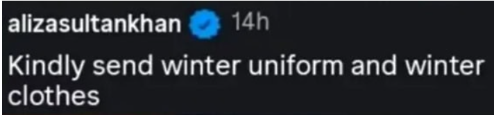 The latest conflict began when Aliza publicly asked Feroze on Instagram to send winter uniforms for their children.