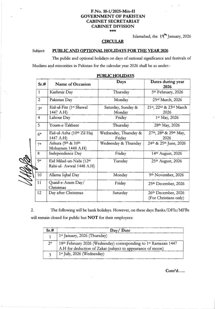 On the other hand, the federal government has also announced the official holidays for 2026. According to the official notification issued by the cabinet division, the Eid-ul-Fitr holidays will be on March 21, 22 and 23.