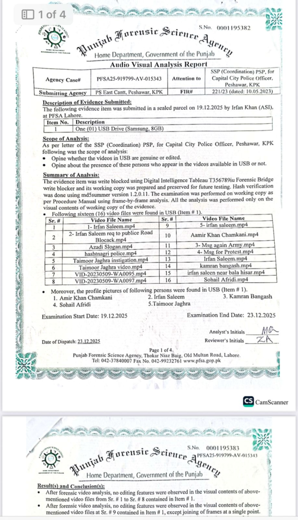 The Punjab Forensic Science Laboratory (PFSA) has completed its forensic analysis of videos related to the May 9, 2023 riots.