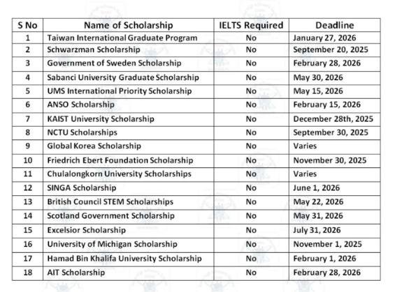If you are a student looking to study abroad without giving IELTS, you can avail fully funded scholarships in 2026 with only a certificate of English proficiency (MOI) in most countries around the world.