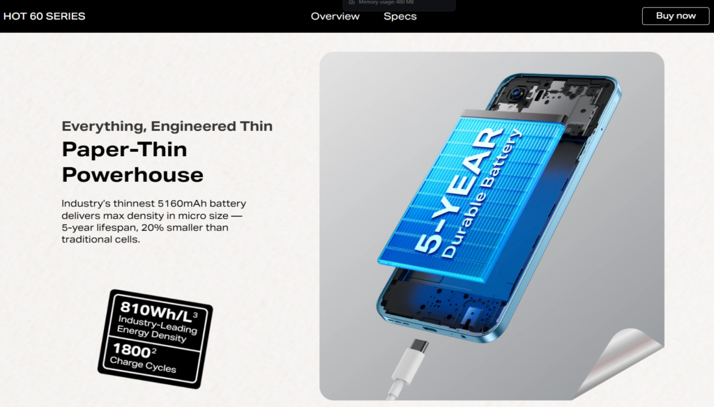 The Android smartphone includes a 5,160mAh battery, which Infinix claims is designed to last up to five years.