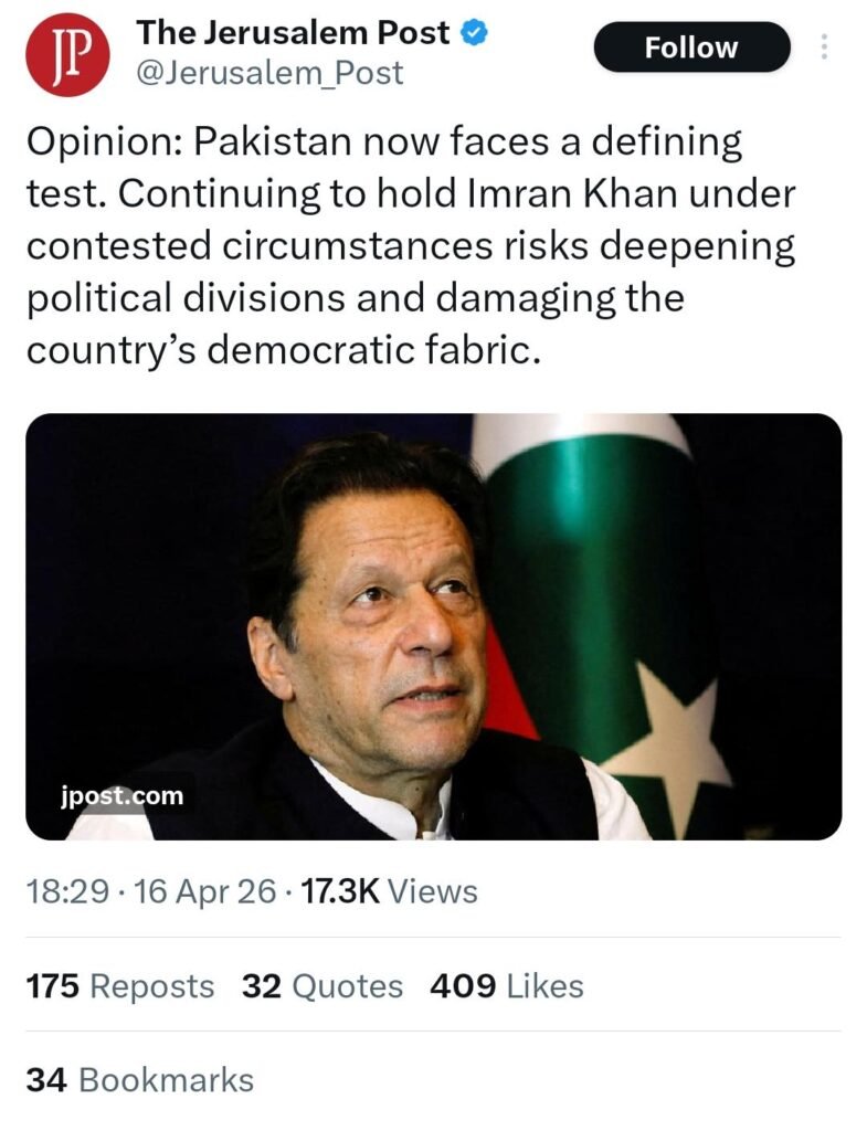 A Jewish extremist wrote in his piece while supporting Imran Khan, “Why is Trump silent on the fate of imprisoned former Pakistani prime minister Imran Khan?”