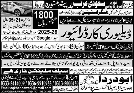 Driver, delivery driver, delivery car driver, car driver, LTV driverAbu Darda International0333-5414009
