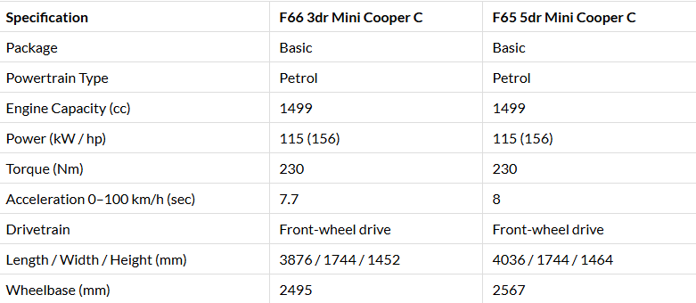 The petrol Cooper is available as a three-door and a five-door model, both powered by a 1.5-litre engine producing 156 horsepower.