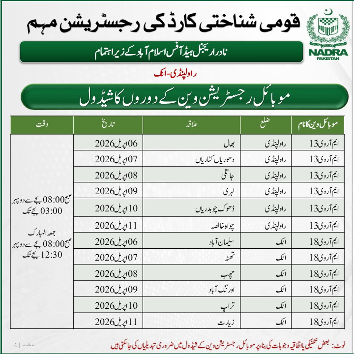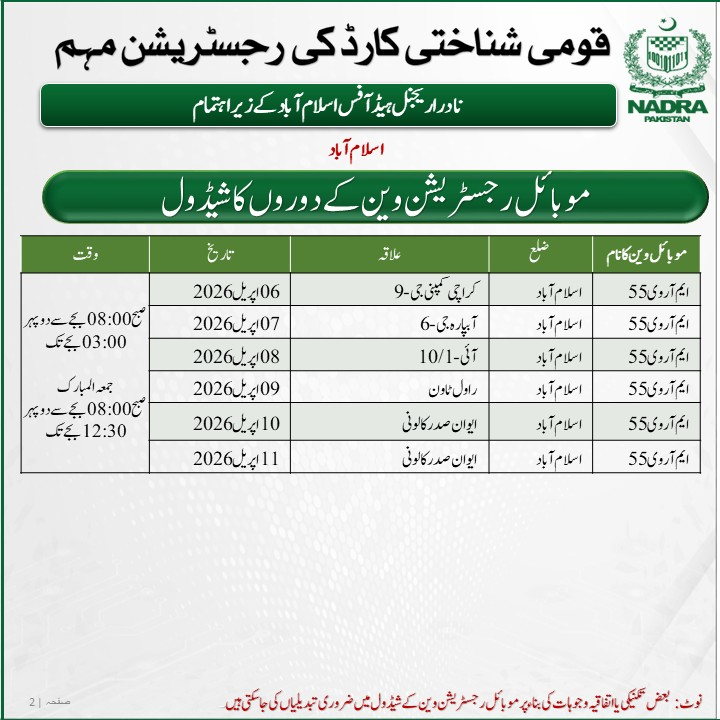 NADRA unveils new schedule for registration vans