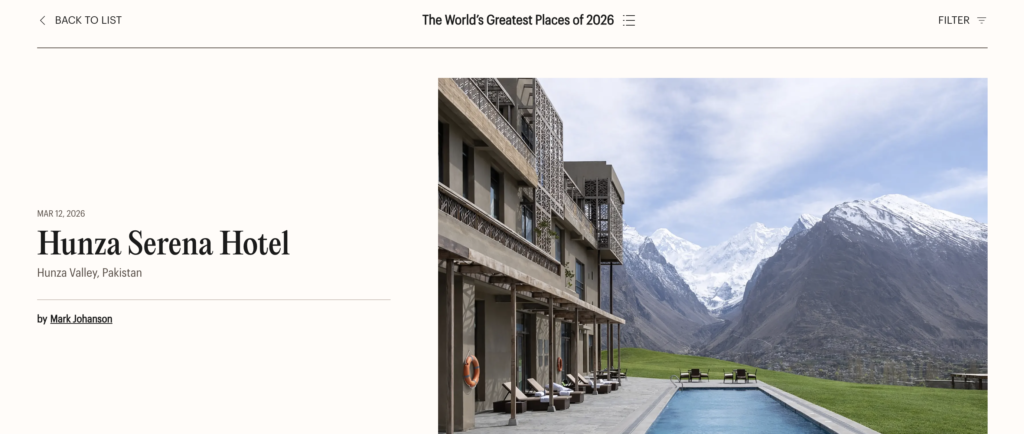 A proud moment for Pakistan as Serena Hotel in Hunza has been recognised in the list of World’s Greatest Places of 2026