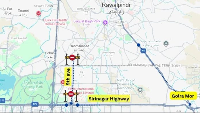 If 9th Avenue is closed, citizens should take Sabzi Mandi Mor–Police Lines Chowk via Srinagar Highway, or from Rawalpindi side, use Golra Mor–Peshawar Mor–Srinagar Highway.