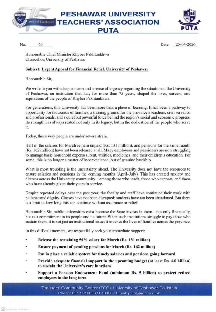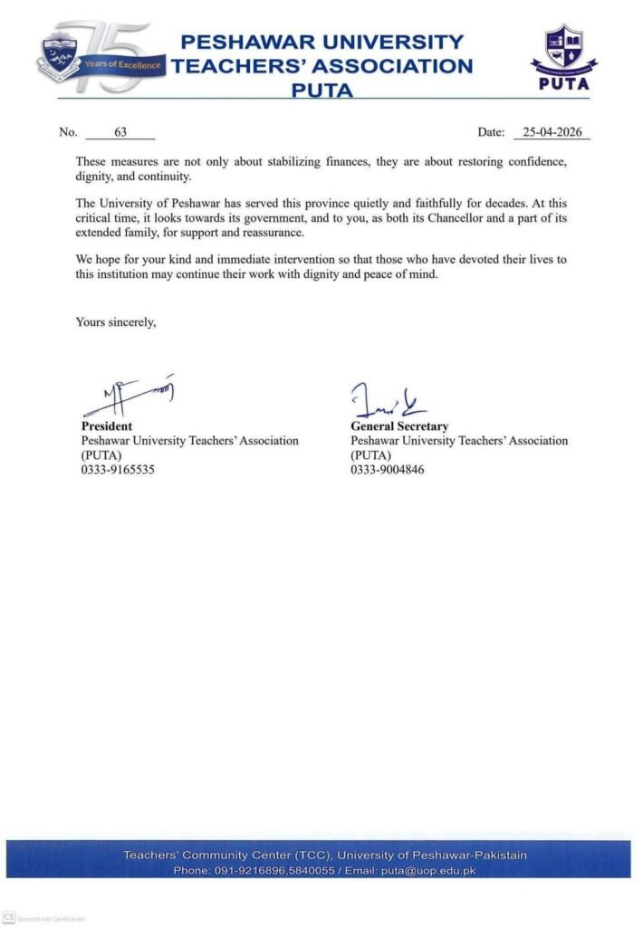 In a recent development, the Peshawar University Teachers Association (PUTA) has written to the Chief Minister, warning that many of the government’s reform claims exist only on paper and do not reflect ground realities.