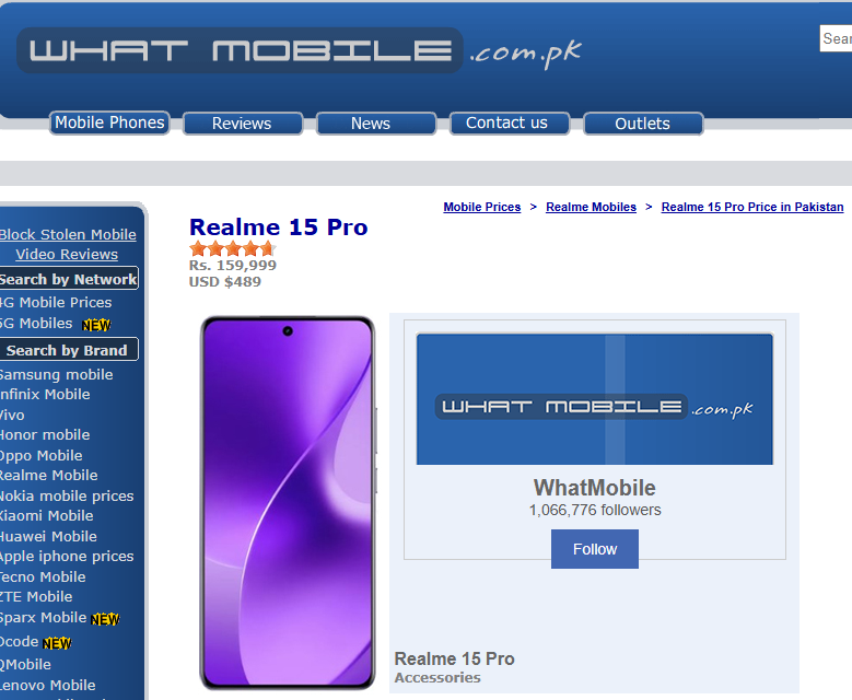 The brand Realme has become very popular in Pakistan for offering great phones at good prices. The ‘Realme 15 Pro 5G’ is one of them. The device is aimed at users looking for a large display, strong battery life, and advanced camera features. The price of the 5G capable android smartphone is Rs159,999.