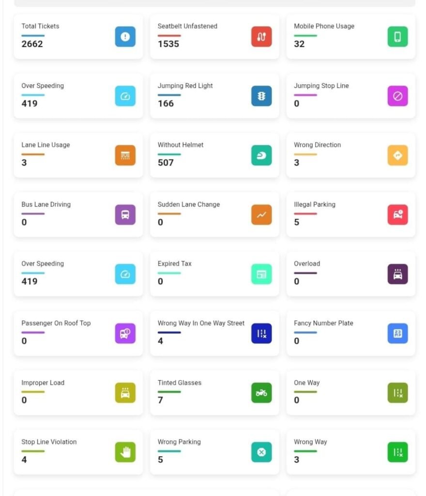 The e challan system uses AI to catch the traffic violators who make signal violations, lane cutting, speeding, failure to wear helmets, and not fastening seat belts.