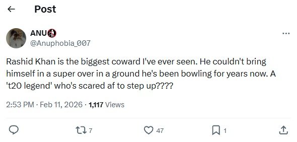 Following the loss, criticism quickly mounted on social media and among cricket analysts. Several observers questioned Rashid Khan’s tactical choices during the decisive moments of the match.