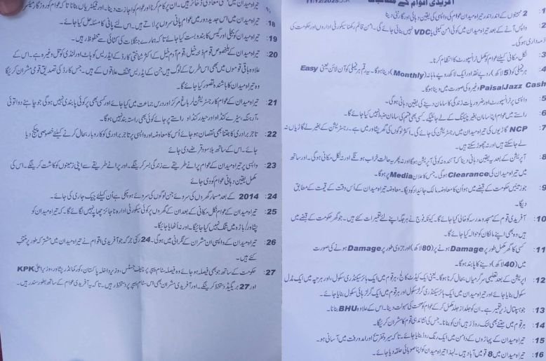 Web desk: Residents of Tirah Valley have agreed to relocate in the interest of peace and the elimination of terrorism, provided the government guarantees their 27 key demands, on Thursday.